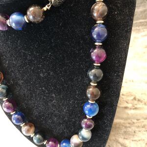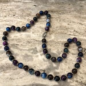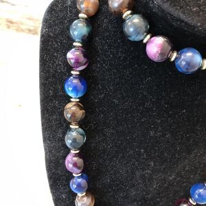 VINTAGE MUTLI-COLORED PLASTIC BEADED NECKLACE W/ GOLD ACCENT BEADS