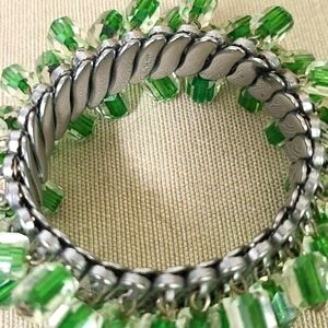 VINTAGE Made in Japan 60s Bracelet Green Glass and Silver Metal