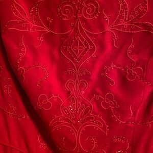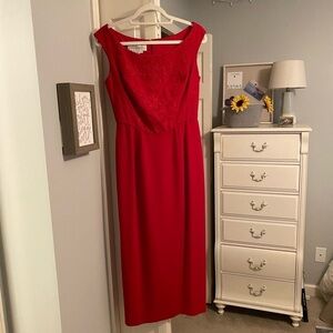 Adorable midi red dress! With a little sparkle and modest length this is a great item!! Please ask any questions!