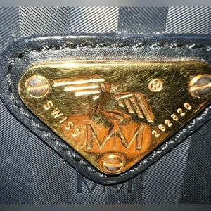 VTG Maison Mollerus, MM designer handbag. Shoulder bag. Gold tone metal hardware. MM Black Rare Vintage bag. There’s is a pen mark on the lining - see pic. The interior has 1- zippered closure pocket, and 1- slide in pocket that has some minor fabric flaking. The top has a zippered closure top. Luxury monogram purse. Swiss made. Good, used condition. Retails for over $700.