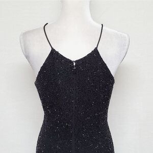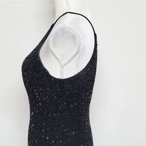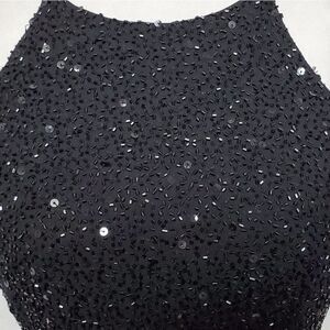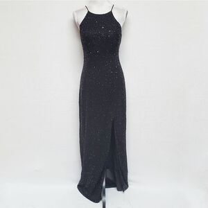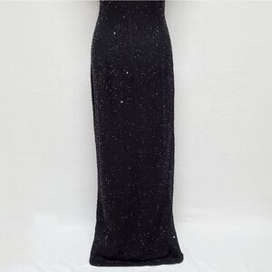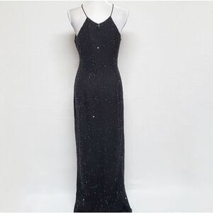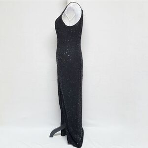 VINTAGE Marina B Black Sequin Beaded Side Slit Sleeveless Formal Maxi Dress 14