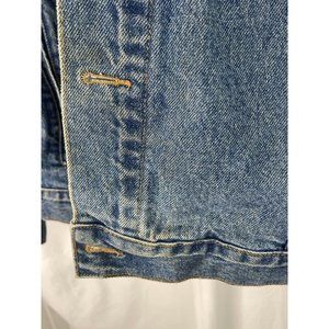 This regular fit jacket comes in size XL and is perfect for men who love the biker style. The jacket has a 90s theme and has a lining material of cotton. The fabric type is denim and the jacket is pre-owned. The jacket is perfect for any occasion and can be paired with any style.