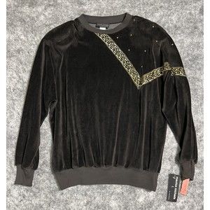 VINTAGE Maurice Michaels Sweater Women's L Brown 80’s Velour Studded Gold