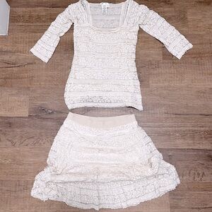 VINTAGE Max Studio Lacey Cream Blouse & Tiered Mini Skirt Set Size XS