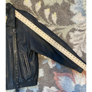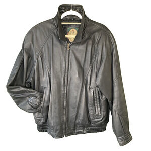 Members Only Jacket Men's Size Large Black Leather Full Zip Bomber Grunge 80s. Good used condition. Shows regular signs of wear for age. The wrist show the most wear.