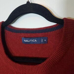 VINTAGE Men's Nautica Sweater XL Maroon Pullover 90s Cotton blend