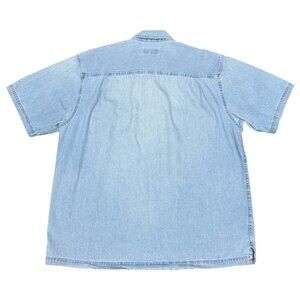 VINTAGE Men's WOLVERINE Denim Jean Short Sleeve Button Down 90s Shirt - Size Extra Large