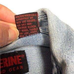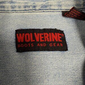 Tags: jean shirt denim button down button up work shirt hunting fishing camping cabin hiking walking outdoorsman vintage Wolverine Boots and Gear construction office meeting
