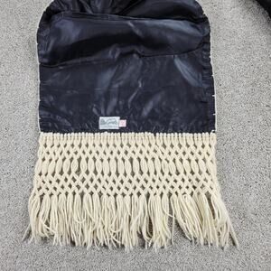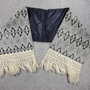 VINTAGE Mexican Rebozo OS Black White Handmade Shawl Wrap Scarf RARE 60s 70S