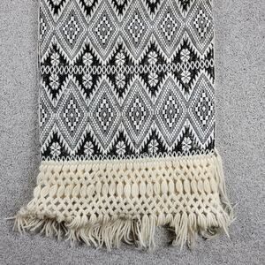 VINTAGE Mexican Rebozo 85" Black White Handmade Shawl Wrap Scarf RARE 60s 70S