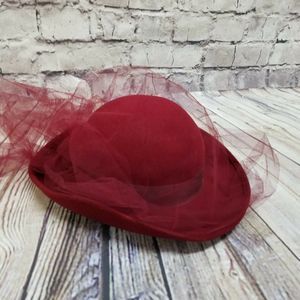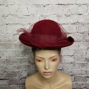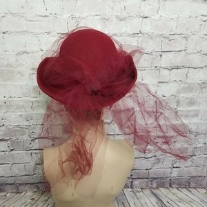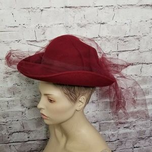 VINTAGE Michael Howard Miss Bierner Burgundy Red Wool Hat with Fishnet Mesh Tulle Detailing