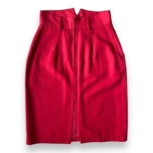 Vintage Michelle Stuart Red High-Waisted Wool Blend Pencil Skirt. Size 8.