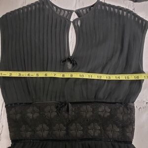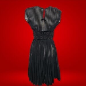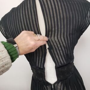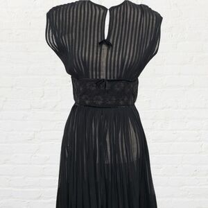 VINTAGE Mid Century Sheer Black Pleated Dress 24" Waist S Semi Open Back R&K VG