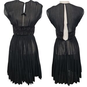 Vintage Mid Century Sheer Black Pleated Dress 24" Waist S Semi Open Back R&K Designs Union Label