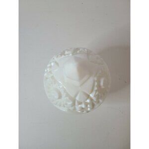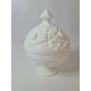 Vintage Milk Glass Footed Covered Candy Dish Star Sunburst Pattern Carved 5"X8"