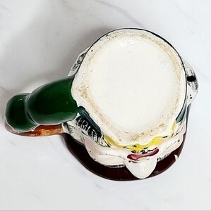 Vintage Miniature Character Toby Mug Jug, unmarked. Bright paint & details, does have multiple chips, crazing, and minor cracks - please look carefully at pictures. Measures approximately 3 inches high and 3 inches across.