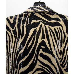 VINTAGE Misook Jacket XS Brown Full Zip Shiny Evenings Zebra Print