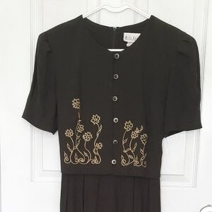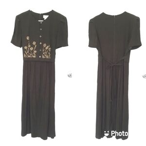 VINTAGE Miss Dorby Maxi Dress Size 12 Dark Green Embroidered Detail