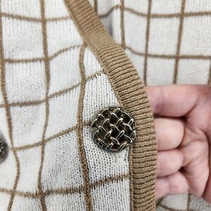 Vintage 1980s Mita Knit Windowpane Plaid Double Breasted Button Front Cardigan Size 14