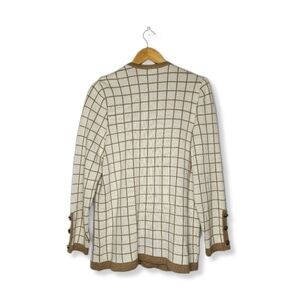 VINTAGE Mita Knit Windowpane Plaid Double Breasted Button Front Cardigan Size 14