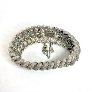 Add a timeless, elegant look to your wardrobe with this vintage Monet 60s etched silver-tone link bracelet and matching clip earrings.