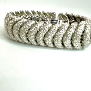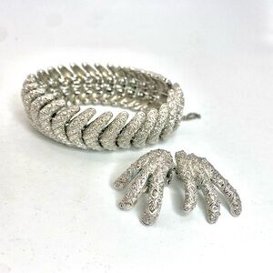 VINTAGE Monet 60’s Etched Silver Tone Link Bracelet and matching clip earrings