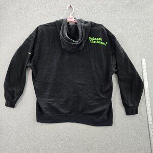 VINTAGE Monster Men Sweatshirt XL Black Hoodie Unleash The Beast Logo Y2K READ