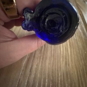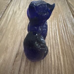 Retired Mosser glass sitting cat in dark cobalt blue. The "M" mark is on the base of the tail. The Mosser "M" Mark and details are crisp and clear.