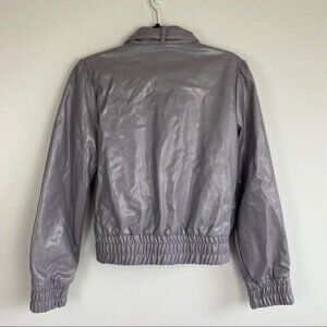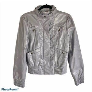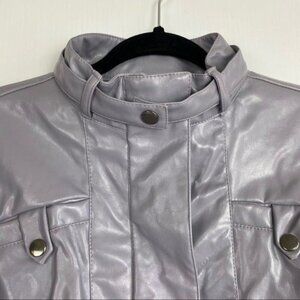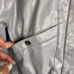 Vintage Moto Pleather Jacket Size Medium in new without tags condition, beautiful color between lila and gray, tones of pockets, elastic sleeves cuffs and hem, check all pictures for details.