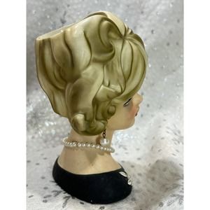 Lady Head Vase Napcoware C7472 Japan Blonde Black Dress Necklace Earrings.