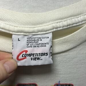 Show off your love for auto racing with this vintage Ricky Rudd #28 Ford Taurus racing t-shirt! Featuring the Competitor’s View brand and the iconic Robert Yates Racing team logo, this white shirt is a must-have for any NASCAR fan. With a size of L, it's perfect for men who want to represent their favorite driver and league.