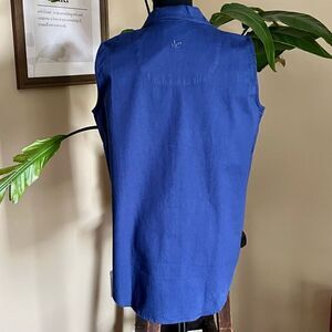 Vintage rare blue cotton sleeveless button down embroidered with NASCAR Rusty Wallace #2 & covered button closure. Never worn with original tags still on. Vintage deadstock. Please see photos for measurements for Medium. Also have in Size XL new with tags.