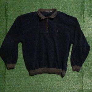 VINTAGE NAUTICA LOGO MOCK NECK 1/4 QUARTER ZIP BLUE FLEECE PULLOVER MENS SZ XXL