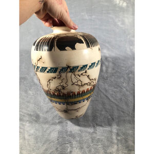 VINTAGE NAVAJO HORSE HAIR POTTERY VASE SIGNED Lorenia watchman