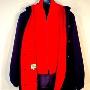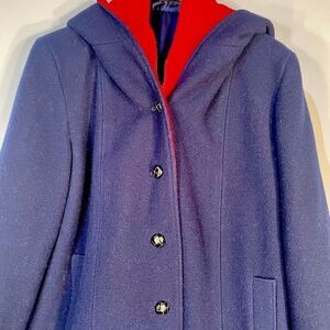 VINTAGE NAVY BLUE WITH RED CAR COAT BY INTERNATIONAL SCENE SIZE 15/16