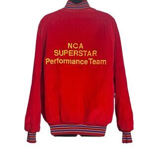 VINTAGE NCA SUPERSTAR PERFORMANCE TEAM CHEER JACKET RED CORDUROY 1990s SIZE L