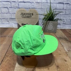 VINTAGE NEON GREEN FOLGERS RACING TEAM ADJ SNAPBACK CAP/HAT MADE IN USA