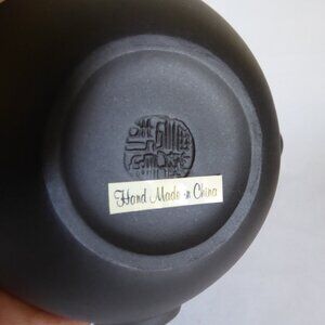 New in box, Chinese, Yixing Ware Collection (CCCI), handcrafted, purple clay, Zisha teapot and decanter. Depicts an abstract flower bud. Stamped with makers marks. It does not come with its original box. Never used for its purpose. (See photos for details) I am the original owner. It has been in climate controlled storage since acquired. Comes from a pet and smoke free home.
