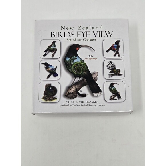 VINTAGE NEW ZEALAND BIRDS EYE VIEW COASTERS SET OF 6 SOPHIE BLOKKER ARTIST BOX