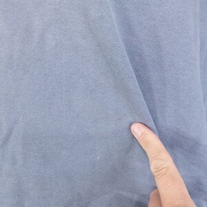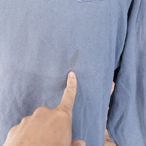 SHIRT HAS SOME DISCOLORATION, DISTRESSING, AND THE COLLAR IS STRETCHED OUT. SEE PHOTOS.