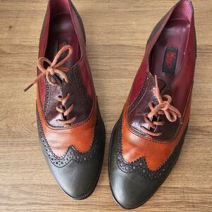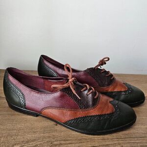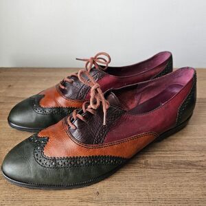 VINTAGE NINE WEST WINGTIP OXFORD FLATS COLORBLOCK GENUINE LEATHER SZ 10 WOMENS