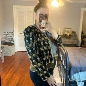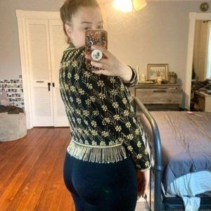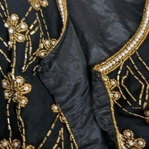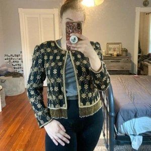 absolutely stunning eye catching fully beaded embellished throughout beaded fringe shoulder pad silk jacket with floral pattern and beaded trim fully lined from the vintage brand nippon night
