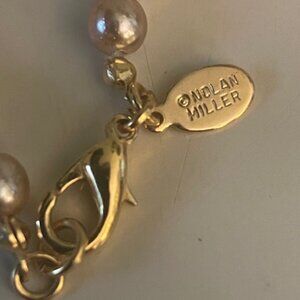 VINTAGE NOLAN MILLER FAUX PEARL NECKLACE GOLD-TONE CLEAR RHINESTONE PENDANT 14"