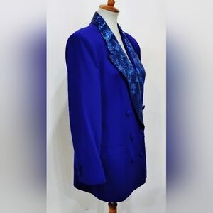 The depth of color with the exquisitely beaded collar make this double breasted tuxedo jacket a show stopper!