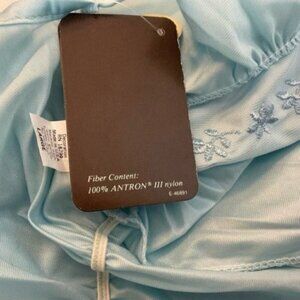 VINTAGE NWT Bernette New York Blue Lingerie Embroidered Nylon Night Gown Large