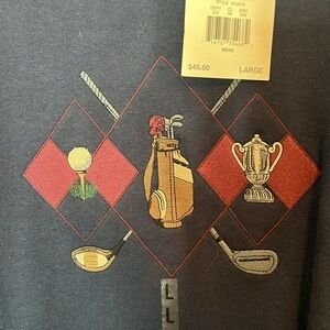Early 2000’s NWT C&B Sport Crewneck GOLF Embroidered pullover sweatshirt. Men’s Size Large. Navy blue. 80% cotton 20% polyester from non-smoking home.