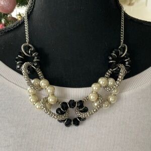 VINTAGE NY&CO MESH BLACK CRYSTAL PEARL TWISTED COLLAR NECKLACE