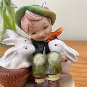 Boy with basket of bunnies. In nice vintage condition. No chips, cracks or crazing