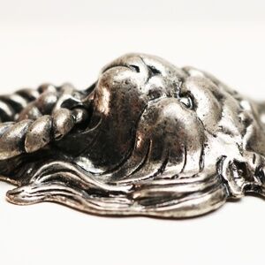 This exquisite necklace is from our Lion's Head collection and this piece is extraordinary...It is three dimensional, highly detailed, in excellent vintage condition. This necklace is signed NAPIER, designed in sterling silver and measures 22"L. The pendant measures 3"L x 2.5"W.