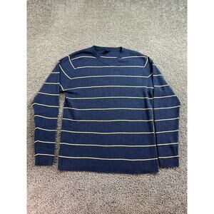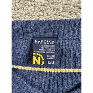 VINTAGE Nautica Sweater Mens Large Blue Yellow Striped Wool Blend Pullover